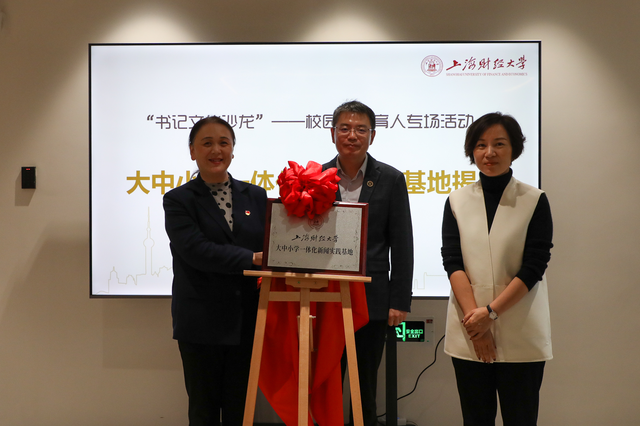 为促进不同学段学生媒介素养和实践能力提升,校党委宣传部联合人文学院、基础教育集团共同搭建大中小学一体化新闻实践基地。曹东勃部长、上财基础教育集团主任王晓露与人文学院副院长林晖共同为基地揭牌。