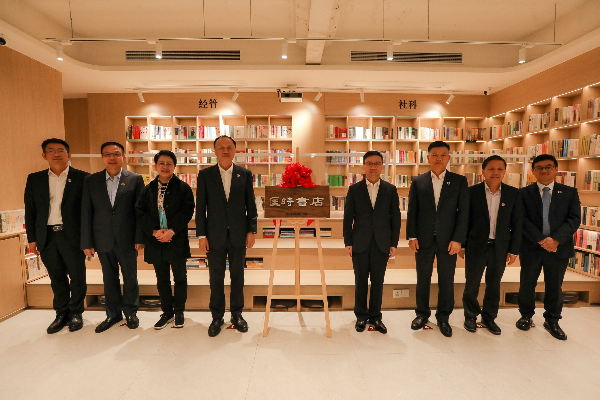 上海财经大学党委书记许涛,高等教育出版社副总编辑、《中国大学教学》杂志主编韩筠,上海报业集团党委副书记、总经理、副社长、上海新华传媒股份有限公司党委书记、董事长胡明华,上海财经大学校董、东南电梯股份有限公司董事长秦健聪,匡时书院院长、原常务副校长徐飞,科技园董事长、原副校长陈信元,校党委副书记、纪委书记何鹏程,副校长刘庆生共同为书店揭幕。开幕仪式由何鹏程副书记主持。