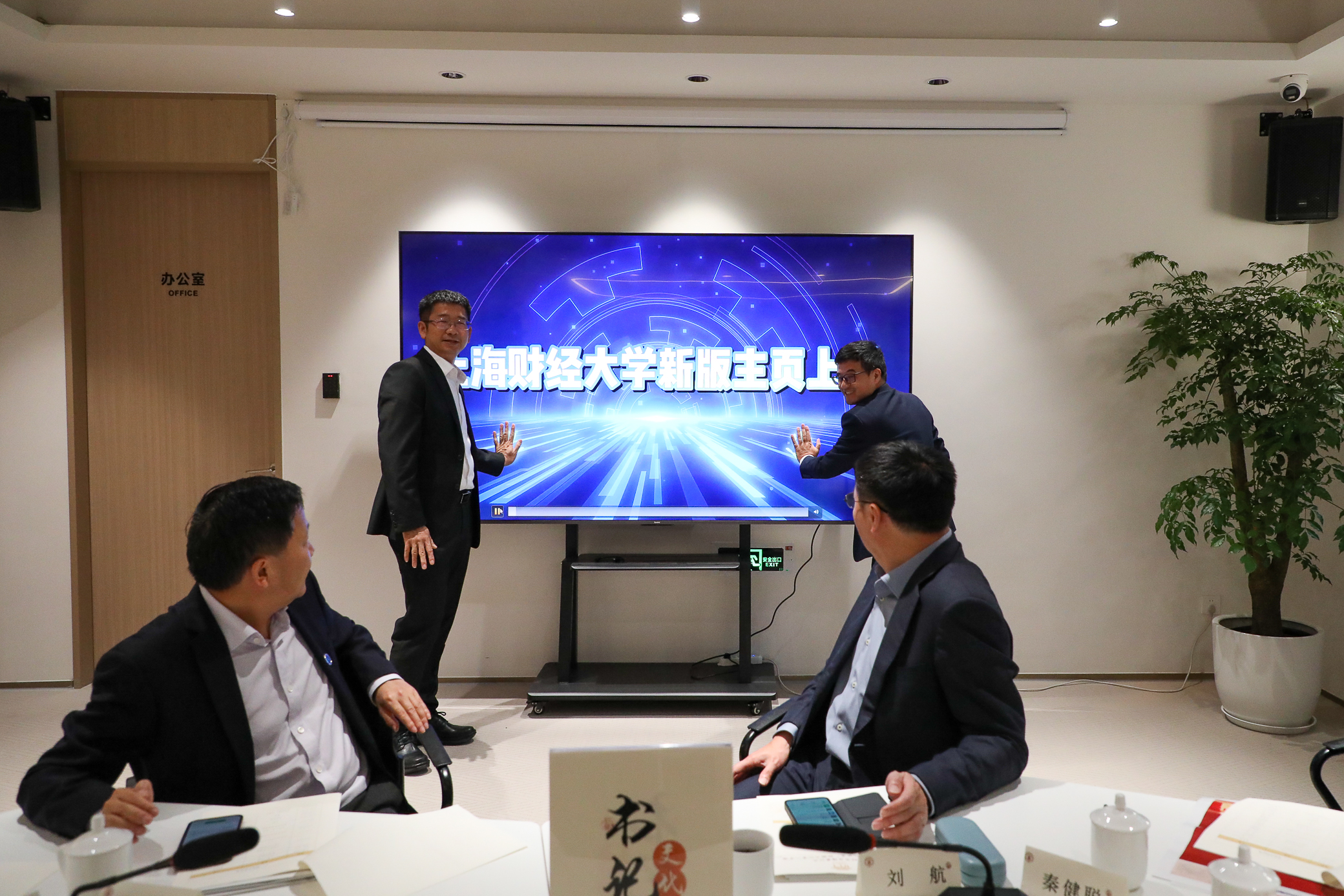 何鹏程副书记与刘庆生副校长共同启动上海财经大学新版中英文网站。新版网站全面优化栏目内容,全方位改版升级服务功能与视觉设计,提高用户的交互体验与视觉体验,提升上财文化品牌形象。